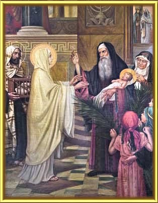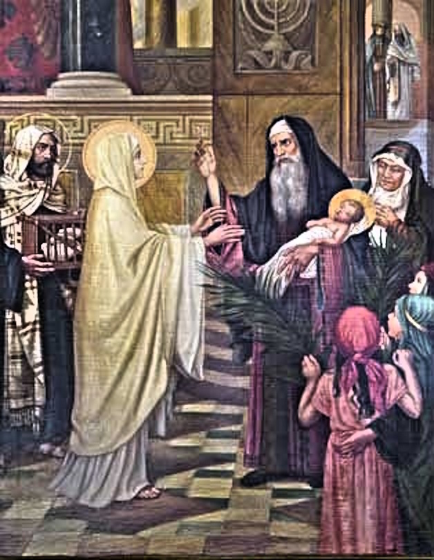 “ São Simeão abençoou-os e disse a Maria, sua mãe: Eis que este menino está destinado a ser uma causa de queda e de soerguimento para muitos homens em Israel, e a ser um sinal que provocará contradições, a fim de serem revelados os pensamentos de muitos corações. E uma espada transpassará a tua alma.”