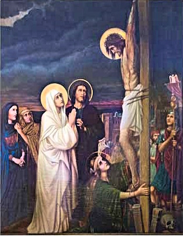 Aos pés da cruz, Ela sentiu a dor da espada transpassando o seu coração, e viu seu Amado Filho entregar seu espirito ao Eterno Pai. A Virgem Maria sentiu como que sua própria alma partisse junto com a de Jesus. São João Crisostomo, faz a seguinte referencia: