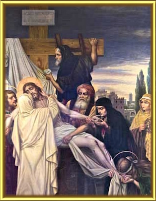O sofrimento da Virgem Maria eram tão grande, que somente pela intervenção milagrosa de Deus que ela não pereceu. O corpo de Jesus é descido e entregue aos seus braços. Profunda agonia ao receber o corpo de seu Amado Filho, olhar para Ele e vê-lo coberto de sangue, cheio de contusões e com feridas profundas. Coração doloroso e angustiado, suportou o peso cruel do martírio, sofrendo pelo bem de todos os homens ao seu redor e as suas futuras gerações. Em seguida o corpo de Jesus foi preparado e embalado, o que deve ter parecido a Virgem Maria uma cena de uma eterna duração. Mas a Virgem Maria de nobre e divino coração, fez sua obediência total como havia prometido a Deus, manteve-se sofrendo bravamente em silencio e com muitas lagrimas.